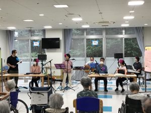 入所者さまに喜んで頂きたく、音楽好きのスタッフが集まり本番に向けて猛練習!!当日は午前に4階ホール、午後に6階ホールにて2回公演(^^)/ をしました♪