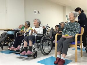 10月のお誕生日の入所者様に、スタッフと皆さまで歌と演奏でお祝いをしました。とても喜んで下さいました。いつまでもお元気でいて下さいね(^-^)