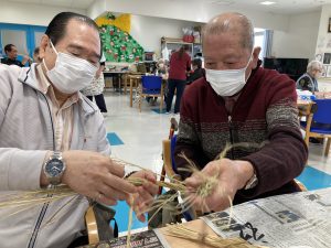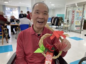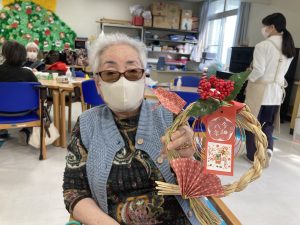 利用者様と製作する今年最後のお楽しみは、園芸療法によるお正月のお飾りです。
