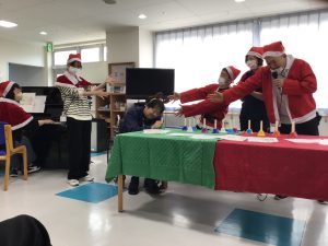 クリスマスにぴったりのハンドベル🔔(^o^)丿、3人で協力しながら愛を込めて奏でました(*^-^*)